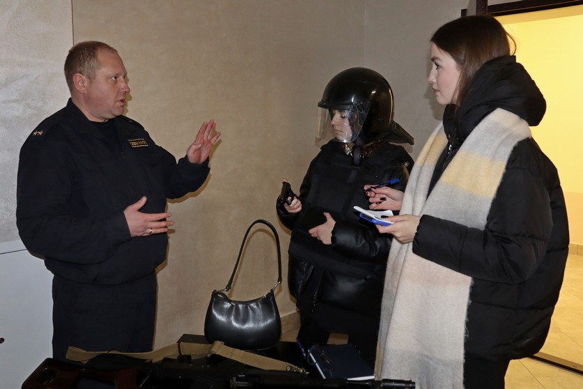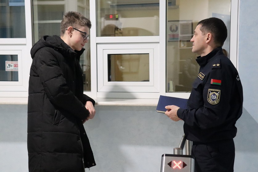— Вельмі рады, што трапіў на экскурсію. З дзяцінства захапляе служба праваахоўнікаў, для мяне прыклад — мой дзядуля, маёр міліцыі ў адстаўцы. Адна з самых яскравых успамінаў дзяцінства, калі прасіў у дзеда надзець яго фуражку. Цяпер рыхтуюся да паступлення ў Акадэмію МУС Рэспублікі Беларусь. Лічу, што служба ў праваахоўчых арганах, — вельмі добры выбар для мужчыны, — падзяліўся 11-класнік, вучань СШ № 49 г. Гомеля Дзмітрый Малажаўскі.