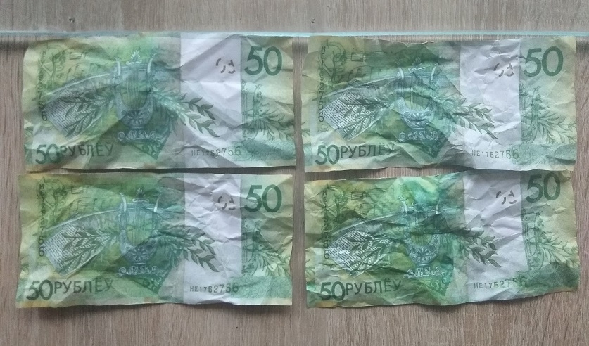 Следствам устаноўлена, што 34-гадовы жыхар сталіцы 14 чэрвеня 2018 года на тэрыторыі рынка «Тутэйшы» па праспекце Партызанскім у Мінску збыў падробленую банкноту наміналам 50 беларускіх рублёў узору 2009 года. Купюра перадавалася пры разліку за тавар, жанчына-прадавец папрасіла дапамогі ў размене ў прадстаўніка адміністрацыі, які праходзіў міма разам з супрацоўнікам органаў унутраных спраў. Сапраўднасць грашовага білета выклікала падазрэнне ў работніка, з прычыны чаго 34-гадовы мужчына быў затрыманы для разбору. Пры гэтым ён паспрабаваў выкінуць яшчэ 4 аналагічных купюры. Таксама пры сабе ў яго выяўленая 50-рублёвая купюра з ідэнтычным серыйным нумарам з падробленай.