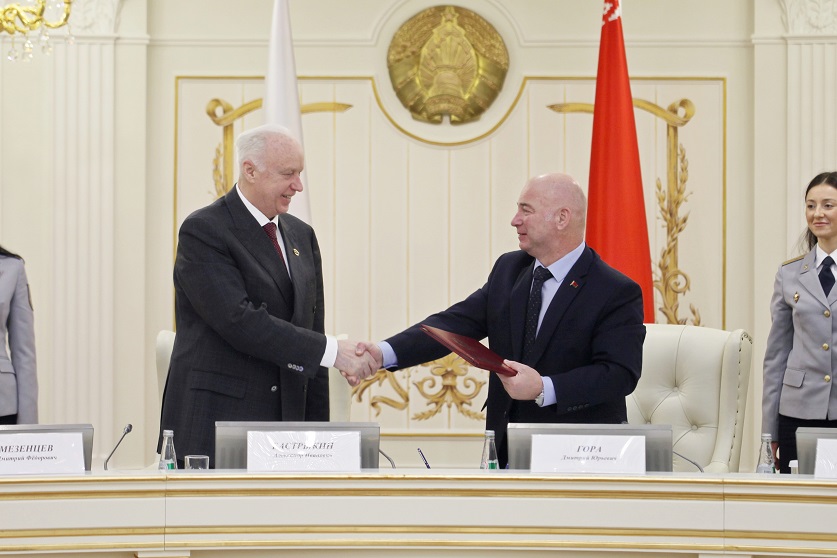 The seventh joint session of the boards of Belarus’ Investigative Committee and Russia’s Investigative Committee is taking place in Minsk on 13 December to discuss topical aspects of terrorist crimes and extremist crimes in addition to other matters of improving the efficiency of preliminary investigation agencies. Chairman of Belarus’ Investigative Committee Dmitry Gora, Chairman of Russia’s Investigative Committee Alexander Bastrykin, and State Secretary of the Union State of Belarus and Russia Dmitry Mezentsev are taking part in the session.