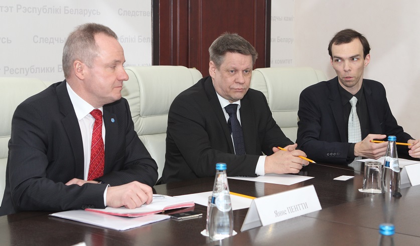 В центральном аппарате Следственного комитета Республики Беларусь состоялась рабочая встреча с делегацией Министерства внутренних дел Финляндской Республики, в состав которой вошли представитель Национального совета полиции Янне Пентти, представитель Национального бюро расследований Ари Мяяття и офицер связи Антти Луото.