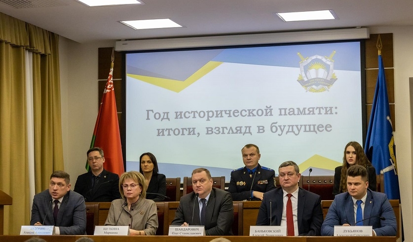 На базе центрального аппарата Следственного комитета состоялся форум «Год исторической памяти: итоги, взгляд в будущее». На мероприятии присутствовали почетные гости: руководитель Представительства Постоянного Комитета Союзного государства в Минске Марианна Щёткина, начальник управления Государственного секретариата Совета Безопасности Алексей Баньковский, старший научный сотрудник Белорусского института стратегических исследований Алексей Авдонин, первый секретарь Центрального комитета Белорусского республиканского союза молодежи Александр Лукьянов. Их приветствовали Первый заместитель Председателя Следственного комитета Олег Шандарович и модератор мероприятия – начальник ведомственного учреждения образования Юрий Каменецкий.