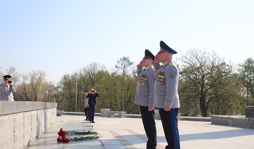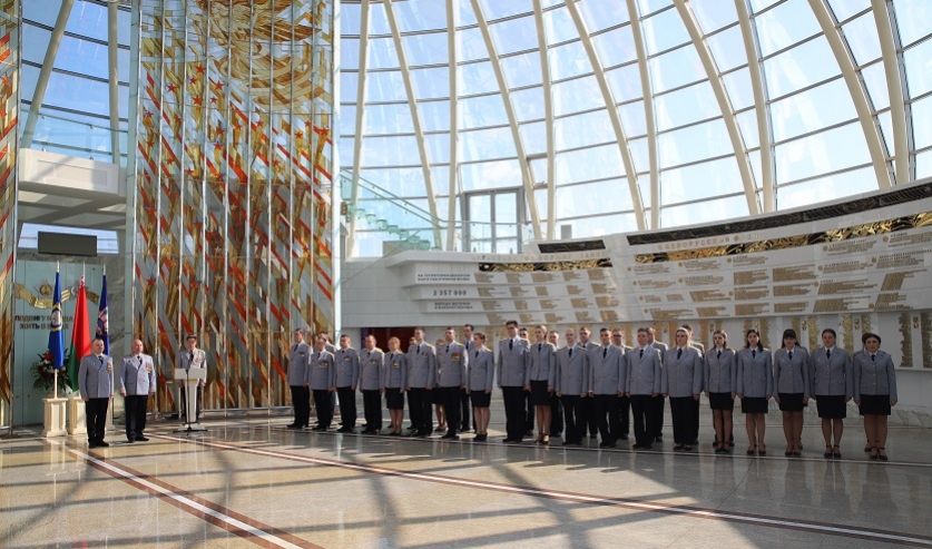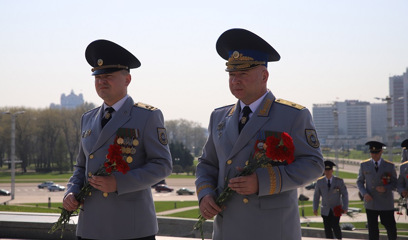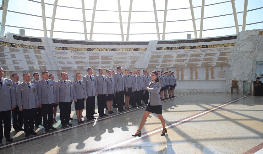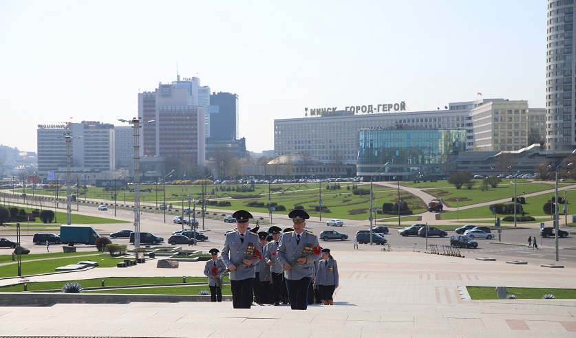 Перед началом торжественной церемонии слушатели Института во главе с Дмитрием Юрьевичем почтили память защитников Родины, жертв Великой Отечественной войны, возложив цветы к монументу Стела «Минск – город-герой».