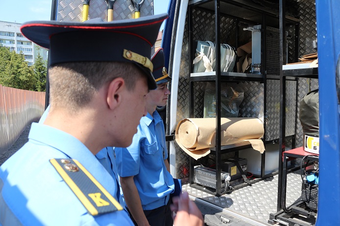Сотрудники отдела криминалистического и методического обеспечения рассказали ребятам о современном техническом оборудовании, которым обладают следователи. В рамках этого курсантов ознакомили с оснащением передвижной криминалистической лаборатории и привели примеры его использования для фиксации вещественных доказательств по наиболее сложным уголовным делам. После демонстрации учащиеся смогли задать вопросы.