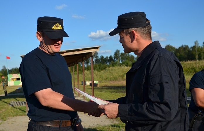 Сотрудники выполняли специальные упражнения для стрельбы из табельного оружия в условиях ограниченного времени. Затем их результаты оценивала судейская коллегия, состоящая из представителей управления кадров и идеологической работы УСК по Брестской области и БФСО «Динамо».