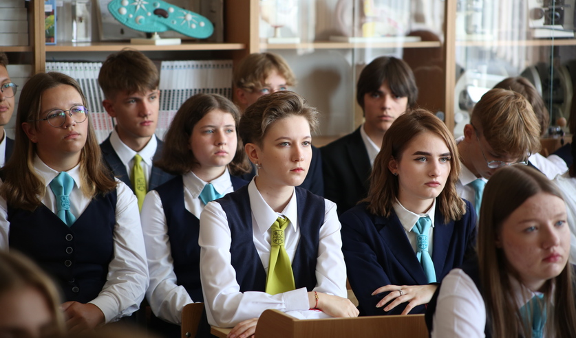 После линейки Дмитрий Конопляник встретился с учащимися подшефных классов на уроке «Беларусь и Я - диалог мира и созидания». Начальник управления отметил, что сотрудничество с Брестским областным лицеем имеет большое значение для обеих сторон: