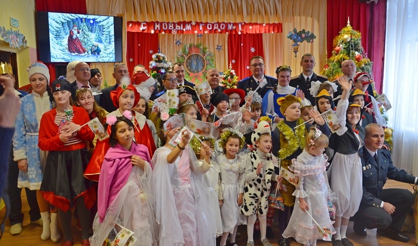 Дети в ярких костюмах, масках сказочных героев, подготовили для гостей веселые песни и стихи. Заместитель начальника управления Сергей Страпко поздравил всех с наступающими новогодними праздниками и вручил детям подарки.