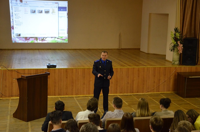 В частности, Дмитрий Климович, следователь по особо важным делам следственного управления, рассказал о хулиганствах, сопряженных с так называемыми «фанатскими разборками». Фигурантами данных дел являлись 18-летние учащиеся колледжей, немногим старше сегодняшних школьников. В рамках общения он дал подросткам советы о том, как не поддаваться негативному влиянию и провокациям агрессивно настроенной компании и как действовать в той или иной конфликтной ситуации.