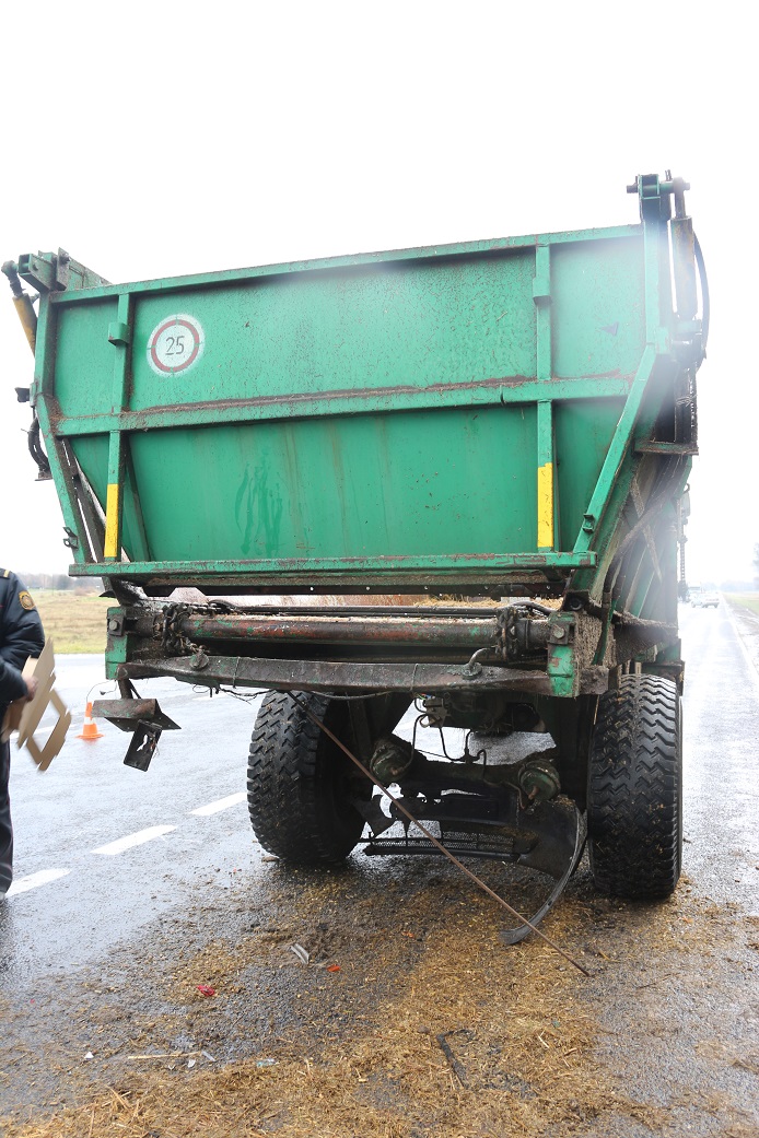 По предварительной информации, 43-летний водитель трактора двигался в направлении д.Мокраны и в перспективе намеревался выполнить маневр левого поворота в сторону автодороги, ведущей к д.Великорита. В это время двигавшийся за ним попутно автомобиль «Фольксваген Пассат» при выезде на встречную полосу для обгона трактора, совершил касательное столкновение с прицепом. Затем в заднюю часть прицепа трактора, так и не приступившего к левому повороту, ударился автомобиль «Форд КА», следовавший за вышеуказанным легковым транспортным средством.