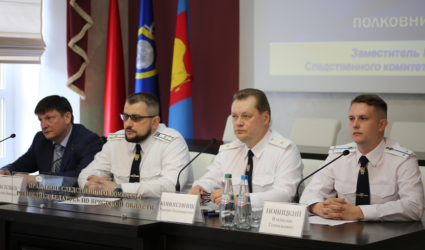 В работе круглого стола приняли участие заместитель Председателя Следственного комитета Беларуси Анатолий Васильев, начальник управления Следственного комитета по Брестской области Дмитрий Конопляник, председатель Постоянной комиссии по образованию, культуре и науке Палаты представителей Национального собрания Республики Беларусь, доктор исторических наук, профессор Игорь Марзалюк, члены делегации Следственного комитета Российской Федерации, сотрудники аппарата управления и лучшие молодые следователи страны.