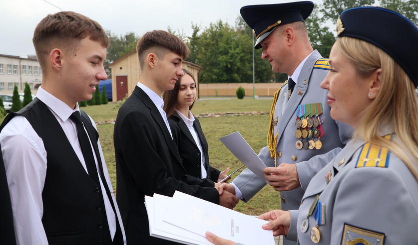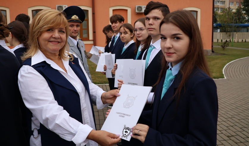 Также начальник УСК по Брестской области и председатель общественной организации ветеранов следствия Людмила Жолнерчик вручили учащимся лицея отличительные знаки о принадлежности к правовым классам и обратился к молодежи с напутственной речью о выборе будущей профессии.