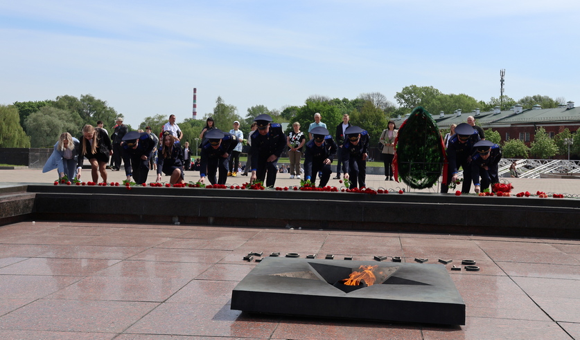По традиции участники встречи возложили цветы к Вечному огню и почтили память защитников цитадели минутой молчания.