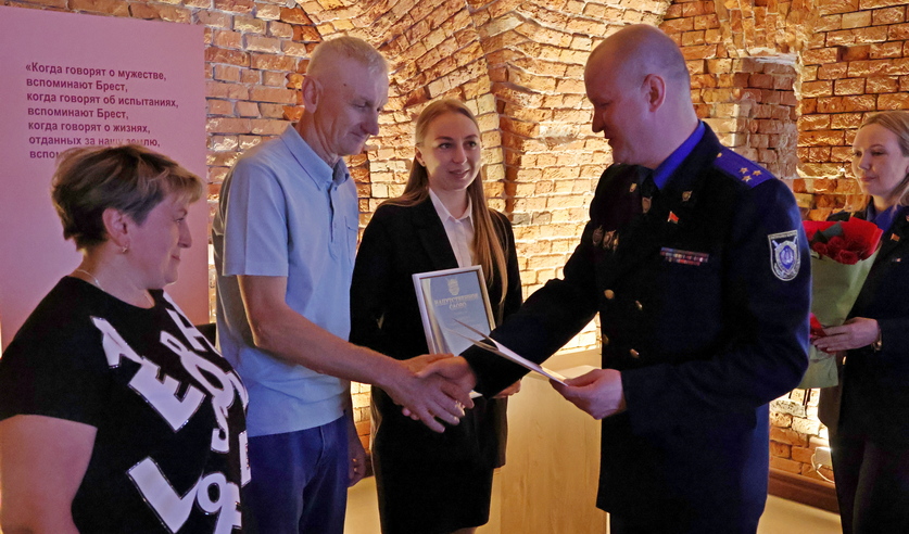 После этого в музее Брестской крепости состоялась церемония награждения. Начальник управления вручил молодым следователям Напутственные слова, а их родителям – Благодарственные письма.