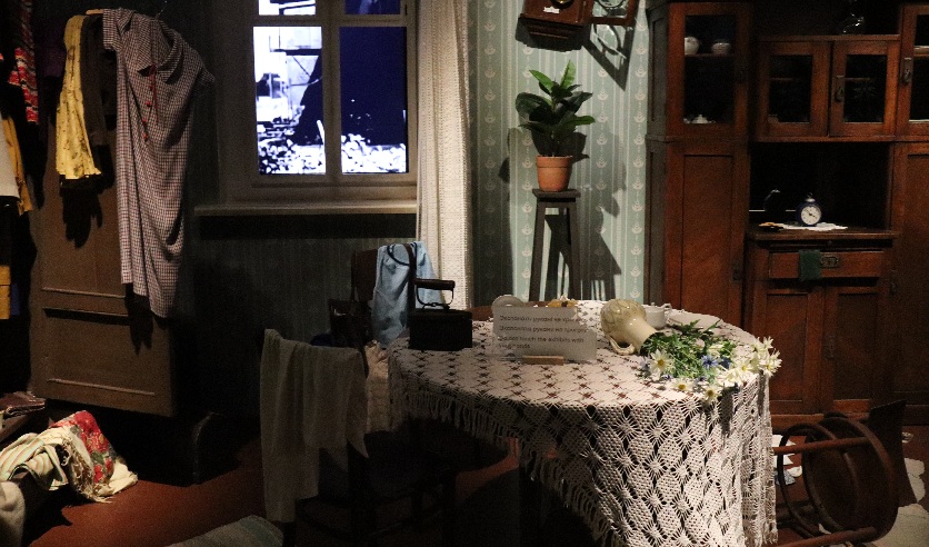 В одном из помещений под названием «Сожжение деревни» с помощью визуальных средств и воспоминаний людей, чудом выживших после зверств нацистов, воссоздана кульминация трагедии. Безусловно, такое никого из присутствующих не оставило равнодушным, участники экскурсии ощутили единство с историей — каждый из них стал частью этого мгновения.