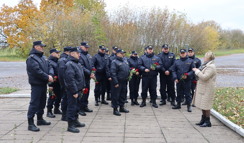 Председатель Крупицкого сельисполкома Марина Астровка рассказала им про скульптурную группу, установленную у изголовья захоронения — воине Советской армии с венком и женщине с лавровой веточкой, склонившихся в скорбном молчании на братской могиле. Особое внимание присутствующих она обратила на проводимую местными властями работу по увековечиванию памяти жертв нацистов. Офицеры возложили цветы, почтив минутой молчания память погибших.