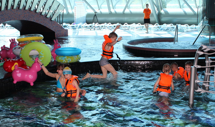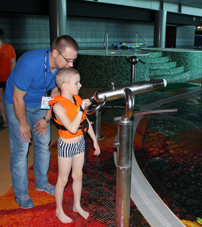 Огромное здание мгновенно заполнилось восторженными криками детей. Водные аттракционы здесь предусмотрены для разных возрастных категорий, поэтому удовольствия хватило на всех. Не забыли и о безопасности. Следователи сменили форменное обмундирование на купальные костюмы, чтобы быть рядом с ребятами.