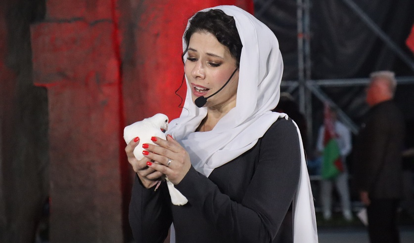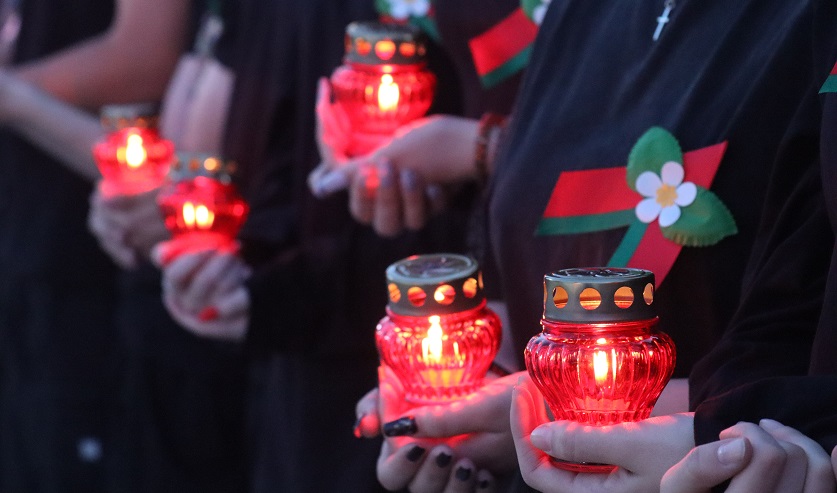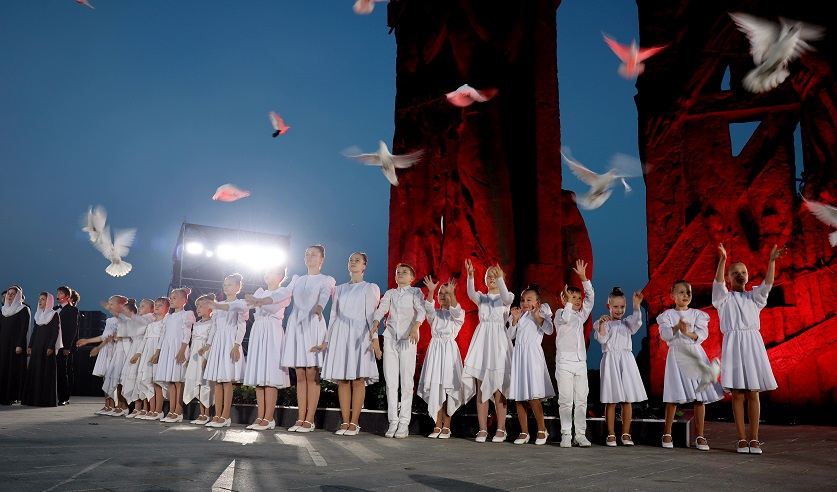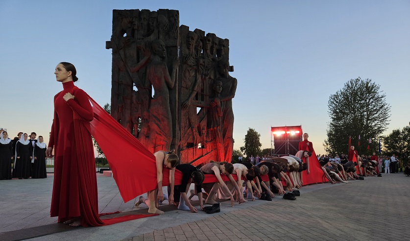 Масштабный митинг-реквием начался с колокольного звона и напоминания присутствующим о страшных событиях, пережитых узниками лагеря смерти. На церемонии собрались несколько тысяч людей, для которых артисты исполнили театральный номер, олицетворяющий невыносимую боль, пережитую народом в те годы.
