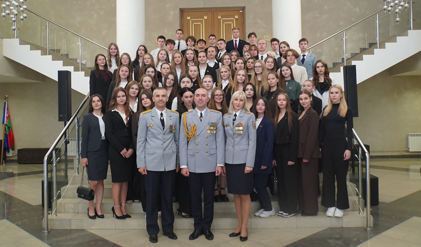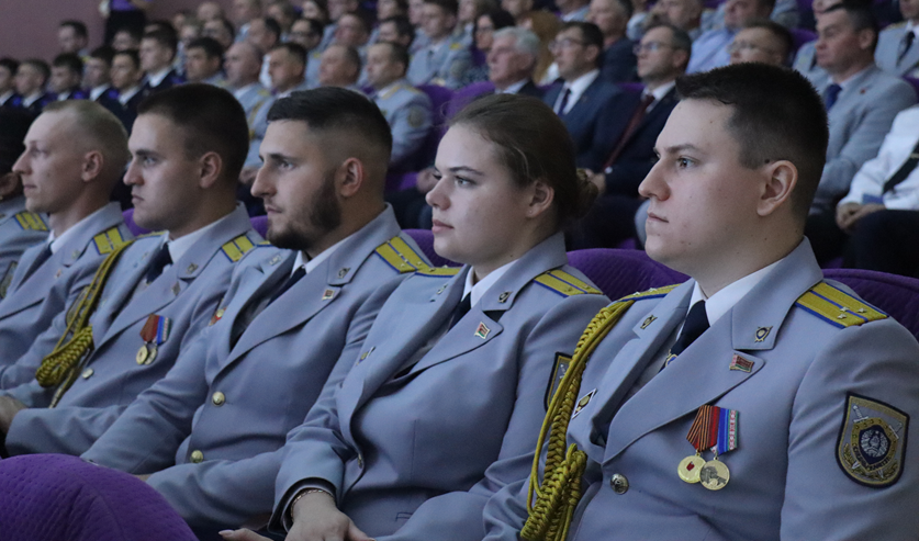 В зале присутствовали представители правоохранительных органов Минска, курсанты следственно-экспертного факультета Академии МВД, студенты вузов, обучающиеся по целевому направлению ведомства, ученики правовых классов средней школы № 204.