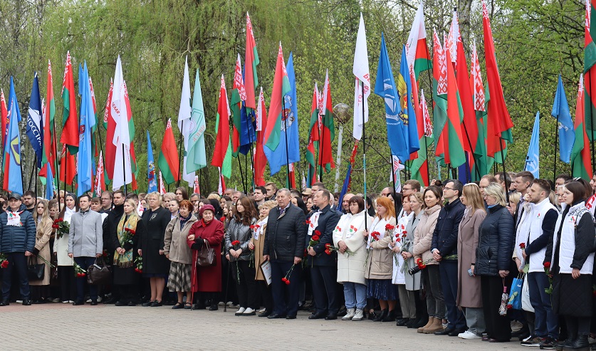 Столичная делегация в составе руководства Мингорисполкома, Мингорсовета, правоохранительных органов столицы и начальника УСК по городу Минску Евгения Архиреева возложила цветы к памятным знакам «Ахвярам Чарнобыля» и «Камню мира Хиросимы», отдав дань памяти жертвам и ликвидаторам последствий аварии.