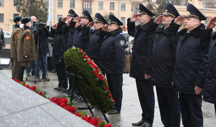 Сегодня у монумента Победы руководство столичного управления во главе с начальником Евгением Архиреевым возложило цветы, почтив память бессмертной отваги белорусов в годы Великой отечественной войны.