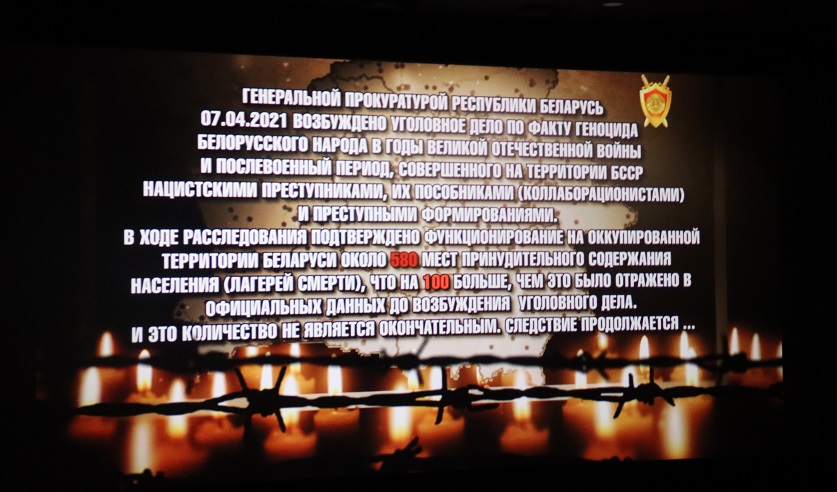 Премьера документальных хроник Беларусьфильма «Лагеря смерти» и «Сожженные деревни», снятые при поддержке Генеральной прокуратуры и Министерства культуры состоялась 17 апреля. Картина собрала в себе ужасные факты злодеяний нацистских преступников и их пособников. Геноцид белорусского народа включал в себя все виды экзекуций и истязаний беззащитных людей: создание лагерей смерти, сожжение заживо, массовые расстрелы, медицинские опыты над детьми, умерщвление в газовых камерах, натравливание собак, пытки голодом и изнурительным трудом, уничтожение целых поселений и деревень. Жуткий список нечеловеческих поступков можно перечислять до бесконечности.