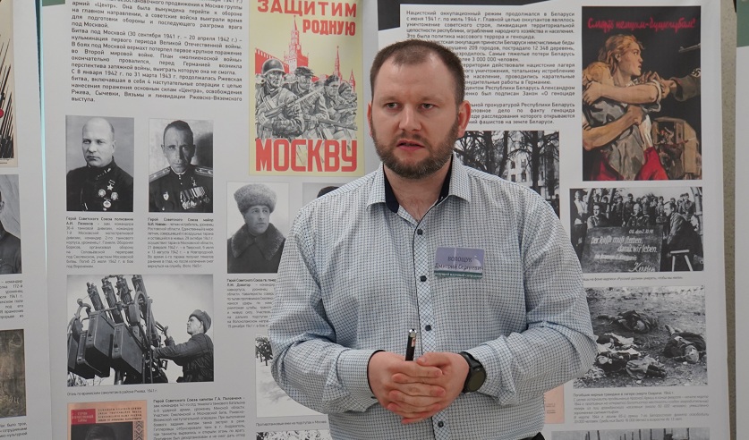 На торжественном открытии ведущий научный сотрудник Белорусского государственного музея истории Великой Отечественной войны Дмитрий Волощук провел экскурсию, живо и эмоционально рассказывая о представленных экспонатах, позволяя гостям глубже погрузиться в атмосферу прошлого.