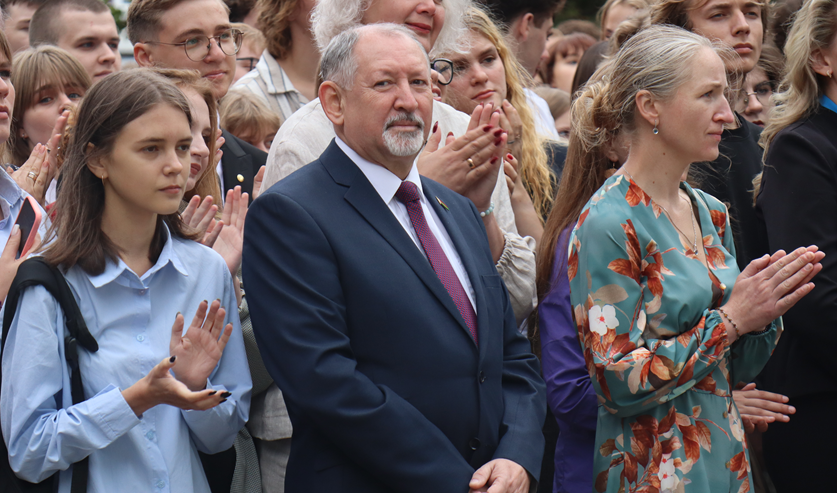 На торжественной линейке Белорусского государственного экономического университета присутствовали заместитель начальника УСК по городу Минску Денис Шаман и начальник управления кадров и идеологической работы Руслан Прелов. Именно в этом ВУЗе по целевому направлению обучаются будущие следователи.