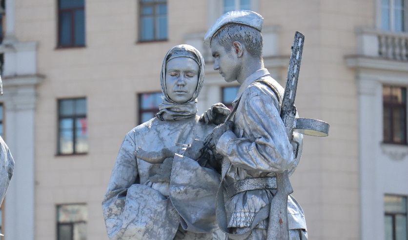 Музыкально-театрализованное представление и церемония возложения цветов к монументу Победы завершили культурно-патриотическую акцию «Календарь и Книга Памяти», в ходе которой прибывающие делегации перелистывали символичный календарь памяти, отражающий события самой кровопролитной в истории войны.