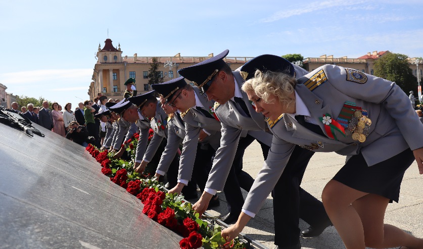 Сегодня у монумента Победы сотрудники столичного управления во главе с начальником Евгением Архиреевым возложили цветы, отдав дань памяти подвигу белорусов в годы Великой отечественной войны.