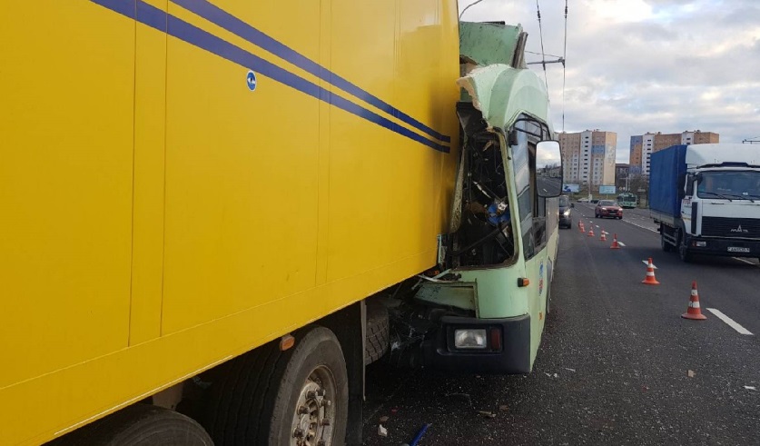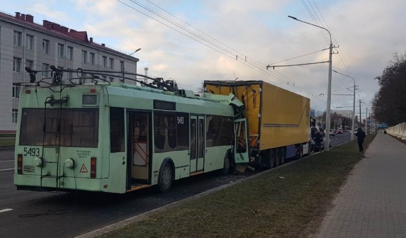 В Минске троллейбус врезался в фуру. Следователи работают на месте происшествия