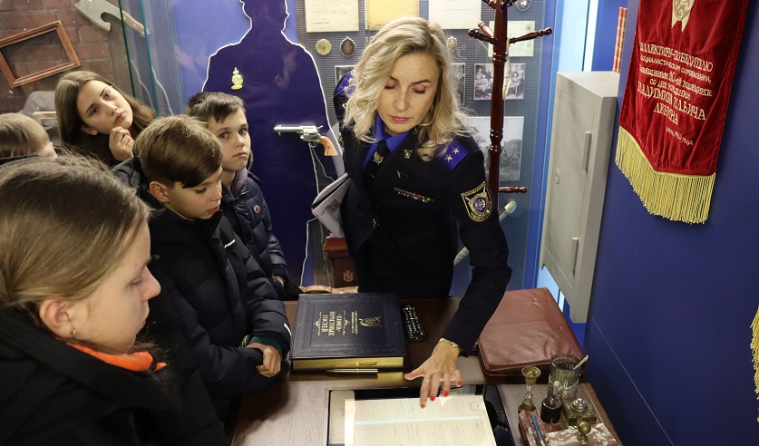 В коллекции музея имеются экспонаты с первыми орудиями преступления, древние тома уголовных дел, а также экспозиция рабочего места следователя 20-го века. Подросткам очень понравился занимательный экскурс в прошлое следователей и многие из них задавали вопросы как можно стать уже современным сотрудником Следственного комитета.