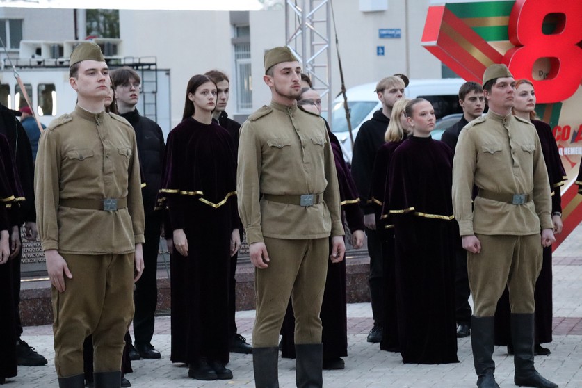 В День Победы офицеры вместе с горожанами-патриотами прошли по Советской улице в праздничном шествии, посвященном 80-й Победной весне. В первых рядах колонны – руководитель областного следствия. В едином порыве шагали по праздничной мостовой сотрудники Следственного комитета и гимназисты профильных классов. Конечная точка шествия – митинг возле главного мемориального комплекса города – Вечного огня на братской могиле советских воинов.