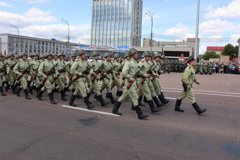 Ярким праздничным аккордом стал для жителей и гостей Гомеля парад военной техники на центральной площади города. Зрители восхищенно приветствовали парадные расчеты воинских подразделений, силовых структур и кадетских классов. Синхронно чеканили шаг сотрудники Следственного комитета, вызывая чувство гордости за современное поколение офицеров, перенявших славные традиции предков-победителей.