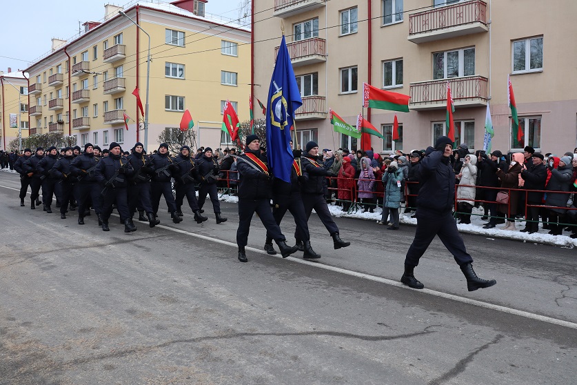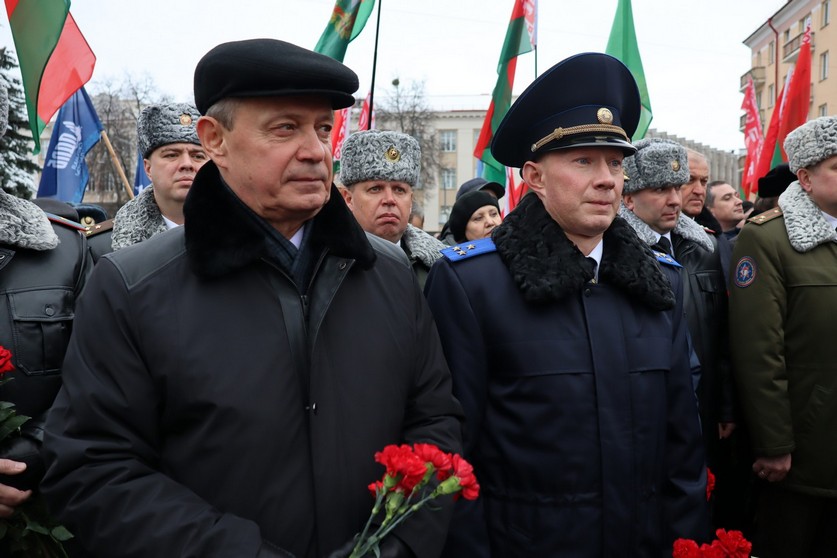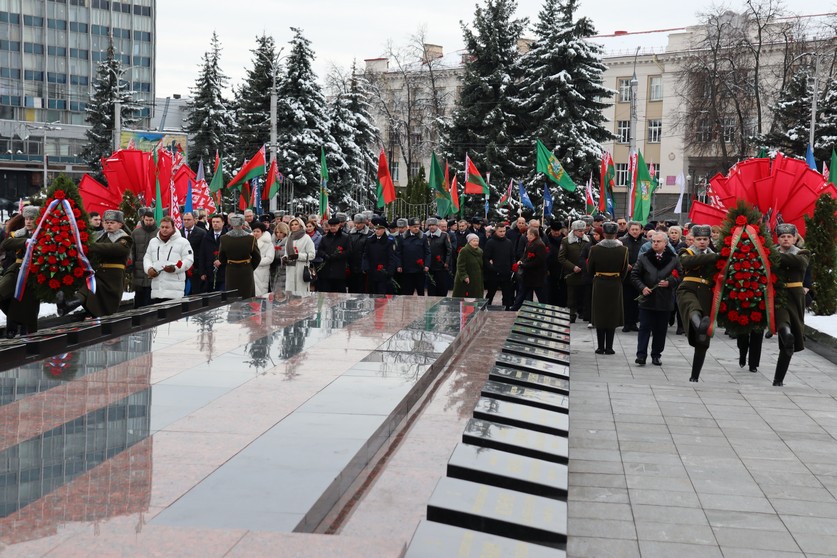 Накануне памятной даты офицеры вместе с представителями органов власти, трудовых коллективов, общественных организаций, учащейся молодежью вспомнили подвиг воинов Красной Армии, партизан и подпольщиков на митингах на Аллее Героев и площади Восстания. У памятного знака жертвам геноцида белорусского народа в годы Великой Отечественной войны скорбели о судьбах замученных земляков.
