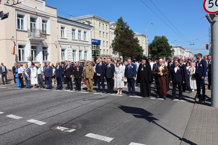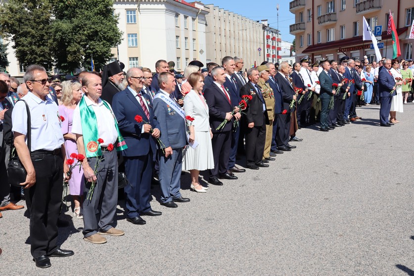 На площади Труда сотрудники Следственного комитета приняли участие в торжественном митинге, посвященном Дню Независимости Республики Беларусь и 81-й годовщине освобождения страны от немецко-фашистских захватчиков. Горожане почтили память героев минутой молчания, возложили цветы к братской могиле воинов и подпольщиков.