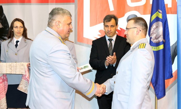 Ценным подарком офицерского собрания управления Следственного комитета по Гомельской области награждена вдова погибшего следователя Мария Акинчиц.