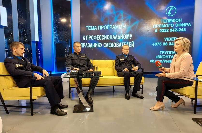 В прямом эфире популярной программы выступили заместитель начальника УСК по Гомельской области Владимир Бобков, начальник криминалистического отдела Алексей Сигаев, следователь по ОВД отдела по расследованию преступлений против личности и общественной безопасности СУ УСК Юрий Полковниченко. Гости телестудии рассказали об истории белорусского следствия, особенностях службы в Следственном комитете, специфике работы криминалистического отдела. Ведущая программы Елена Троценко также интересовалась профессиональными навыками следователей, методами расследования преступлений, психоэмоциональной нагрузкой, профориентационной работой.