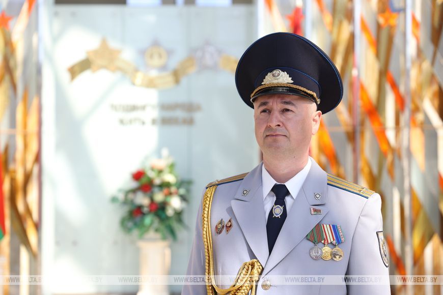 В эти дни Виталий Бондарев находится в Минске. Он вместе с коллегами представляет юго-восточный регион в коробке СК на параде ко Дню Победы. Уже несколько недель продолжаются репетиции. Задача ответственная, поэтому и график напряженный. Уделяется внимание отработке каждого элемента, вплоть до поворота головы, чеканки шага. Важно отточить до автоматизма все движения, ведь их синхронно должны выполнить 120 человек.