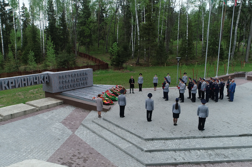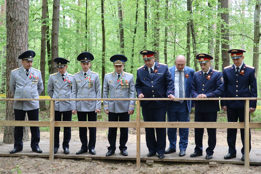 Офицеры посетили место перезахоронения останков жертв «фабрики смерти» и почтили память безвинно убиенных. Вместе с белорусскими коллегами возложили цветы к мемориальному комплексу «Партизанская криничка», возведенного на месте базирования гомельского партизанского отряда «Большевик».