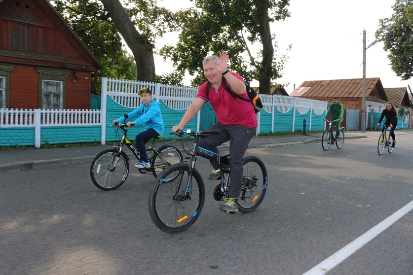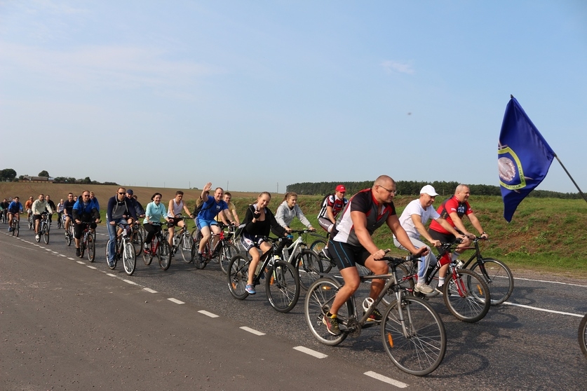 Любители здорового образа жизни стартовали возле Ледового дворца в Гомеле. Проехав 16 километров, велосипедисты прибыли в деревню Хальч Ветковского района.