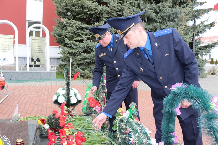 В городском поселке Брагин представители областного аппарата, следственного управления, участник ликвидации последствий аварии на ЧАЭС Сусоев Сергей Александрович и молодые сотрудники Гомельского городского отдела Следственного комитета совместно с начальником Брагинского РОСК возложили цветы к памятнику Василия Игнатенко.