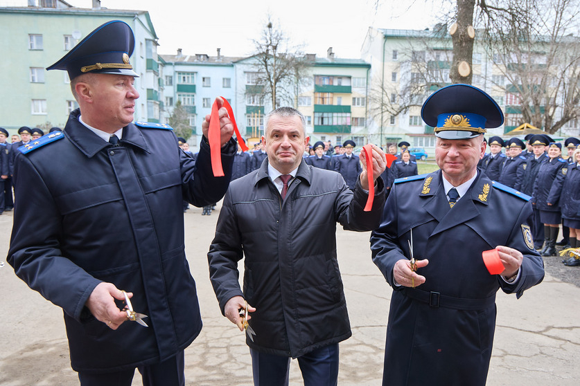 После торжественной части для гостей проведена экскурсия по новым помещениям. В актовом зале Дмитрий Гора и Иван Крупко оставили записи в Книге памяти.
