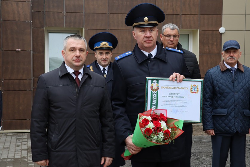 За многолетний добросовестный труд и высокие достижения в служебной деятельности Иван Крупко вручил Почетную грамоту Гомельского облисполкома начальнику ГГОСК Александру Евтухову.