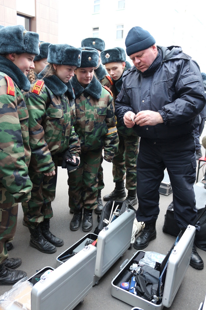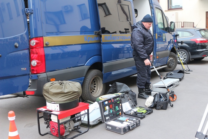 После посещения административного здания учащимся продемонстрировали возможности передвижной криминалистической лаборатории на базе автомобиля «Фольксваген Крафтер». Начальник отдела криминалистического и методического обеспечения управления Следственного комитета по Гомельской области полковник юстиции Николай Митрахович доходчиво рассказал кадетам об организации работы на местах происшествий по фактам совершения тяжких и особо тяжких преступлений. Учащиеся с большим интересом исследовали содержимое унифицированных криминалистических чемоданов, технические средства поиска следов преступлений.