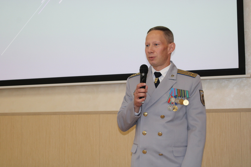 Праздничная программа началась с видеопоздравления начальника УСК по Гомельской области Сергея Удовикова. Находящийся в отпуске руководитель прислал видеоролик, в котором креативно поздравил личный состав и ветеранов следствия с 11-й годовщиной со Дня образования ведомства. Со сцены актового зала поздравление прозвучало от ВрИОД начальника управления Максима Спринцина.