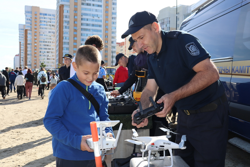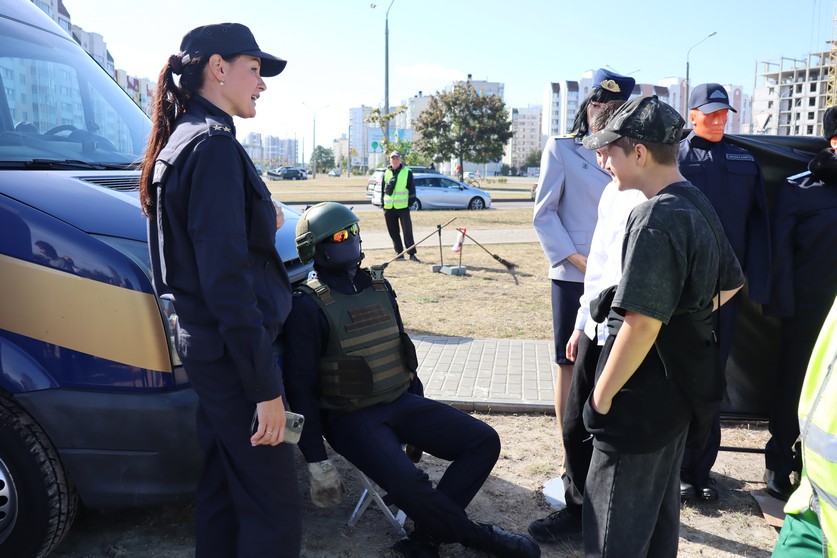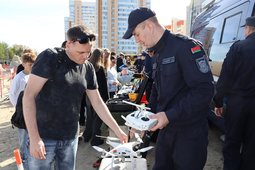 Особый интерес вызвала передвижная криминалистическая лаборатория и техническое оснащение белорусских следователей. Сотрудники криминалистического отдела с большим знанием дела объясняли гостям особенности работы на различных происшествиях, принцип работы переносного лабораторного комплекса для обнаружения биологических следов «Светоч-К», приводили примеры использования квадрокоптера и металлоискателя.