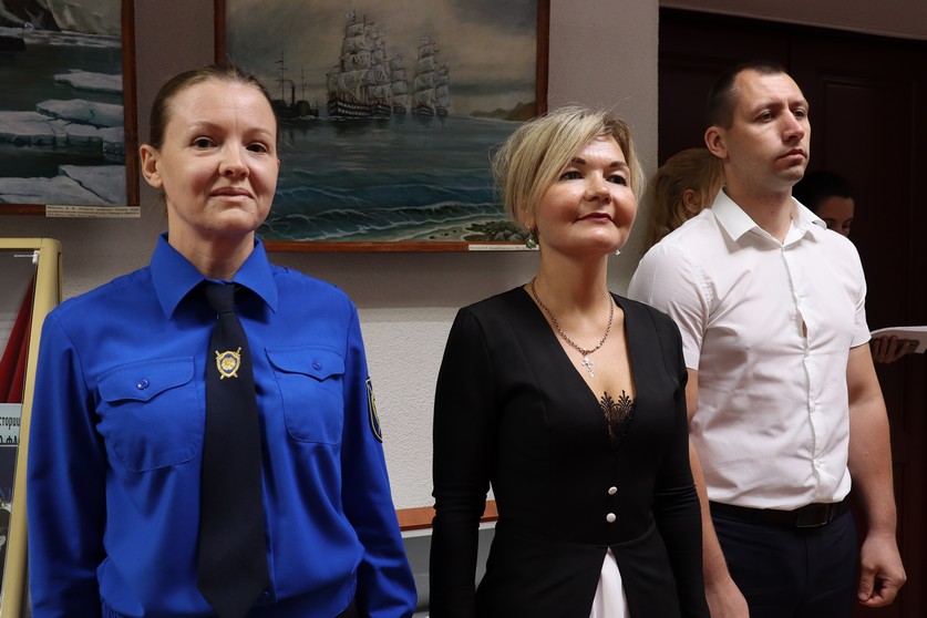 В одном из залов музея также чествовали сотрудников УСК по Гомельской области. Среди награжденных - Сергей Осипенко, Антон Колесников, Алевтина Град, Дмитрий Казак и Денис Белицкий.