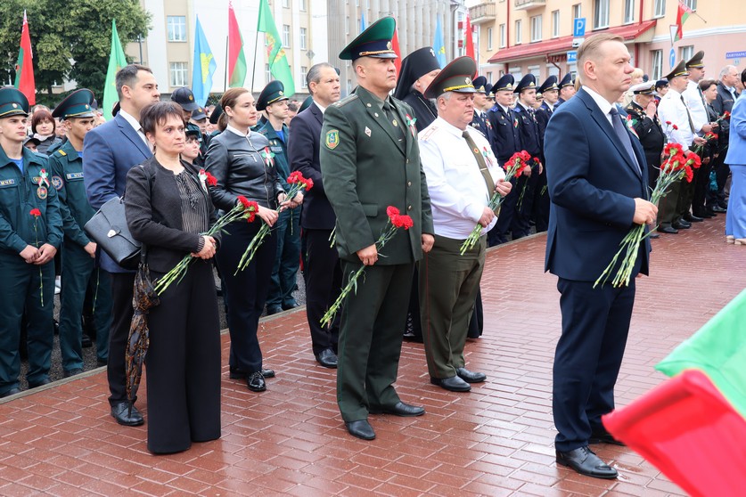 В полдень офицеры стали участниками митинга-реквиема возле главного мемориального комплекса Гомеля. Братская могила у Вечного огня приняла в себя военнослужащих от рядового до генерала, от неизвестного солдата до Героев Советского Союза. У обелиска великого подвига патриоты присоединились к всебелорусской минуте молчания. Трагические судьбы наших убитых и замученных земляков оплакал внезапный дождь. После возложения цветов к монументу победно засияло солнце, наполнив сердца людей светлой радостью и надеждой.