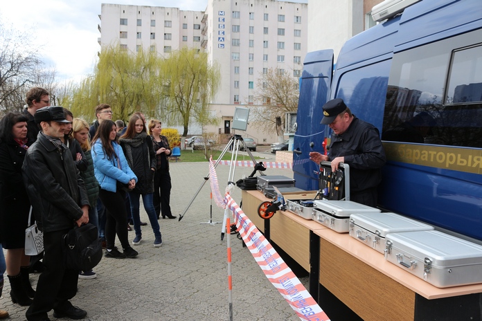 После завершения презентационной части мероприятия МИТСО, школьникам предоставили возможность прикоснуться к профессии следователя. На прилегающей территории университета сотрудники криминалистического отдела УСК организовали демонстрацию возможностей передвижной криминалистической лаборатории. Начальник отдела Николай Митрахович подробно рассказал о технических средствах, используемых при работе на местах происшествий. В ходе беседы учащиеся получили ответы на интересующие их вопросы.