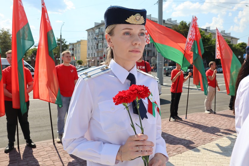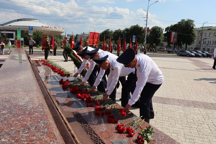 В рядах патриотов, чтущих героическое прошлое своих предков, торжественно стояли сотрудники городского и областного следствия. Офицеры вместе с патриотами-единомышленниками почтили память защитников минутой молчания, возложили цветы к братской могиле участников обороны Гомеля в августе 1941 года и тех, кто погиб при освобождении города в 1943 году.