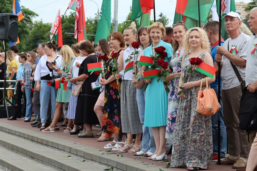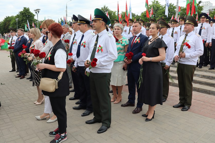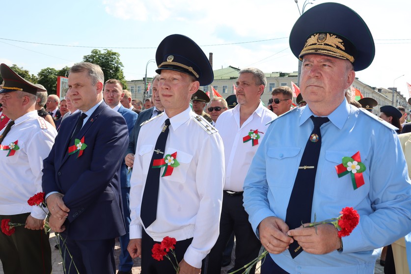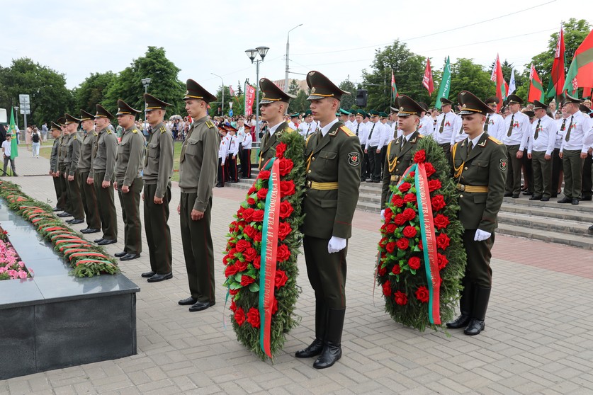 Торжественный митинг прошел на Аллее Героев. Отдать дань уважения героям войны приехали представители органов власти, депутатский корпус, граждане различных профессий и возраста, которых объединяет любовь к своему Отечеству. Разделить важнейшее для белорусов событие прибыла делегация из Российской Федерации.